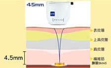 | 4.5mm探頭可作用到SMAS筋膜層 | 僅作用到真皮層3mm | 作用到SMAS |